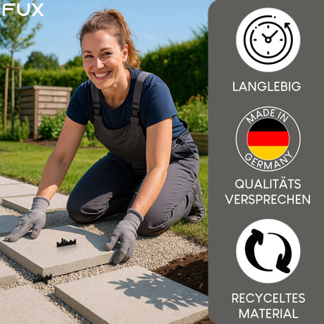 verbessern die Wasserabführung und schützen die Steine vor Druckspannungen. Ebenso eignen sich Abstandshalter für Gartenplatten, um Gehwege oder größere Steinflächen mit perfekter Präzision zu verlegen.