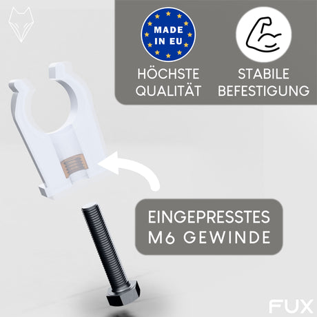 Unsere Rohrclips bieten eine sichere und stabile Befestigung für Rohre. Sie sind einfach zu installieren und sorgen für eine zuverlässige Führung und Fixierung von Rohrleitungen. Hergestellt aus robustem Material, garantieren sie Langlebigkeit und Widerstandsfähigkeit. Ideal für eine saubere und professionelle Rohrinstallation – FUX Markenware mit Zufriedenheitsgarantie.